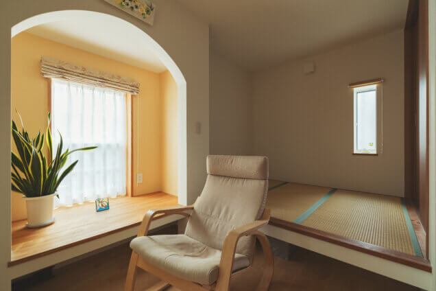 1階LDKと出窓と小上がりのタタミスペースは安らぎの空間