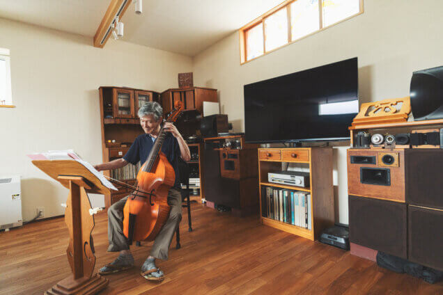暮らしの中心にある音楽室。広々としたその空間は、使用用途も様々です。