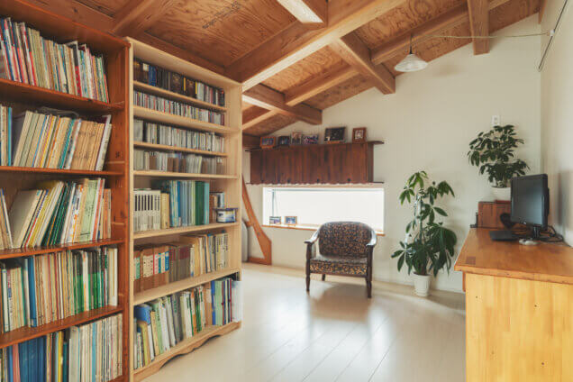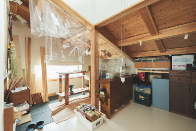 音楽だけではなく、クラフトマンとしての姿も併せ持つ施主様。ご自身で楽器や家具を製作されます。そのための作業スペースを中2階のロフトスペースに配置してあります。