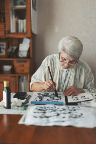 お住まいは2世帯住宅のため、お母様の居住スペースもしっかり確保されています。寝室、キッチン、趣味の書道もできる広々としたリビングスペースなど、ワンフロアで完結できる間取りになっています。