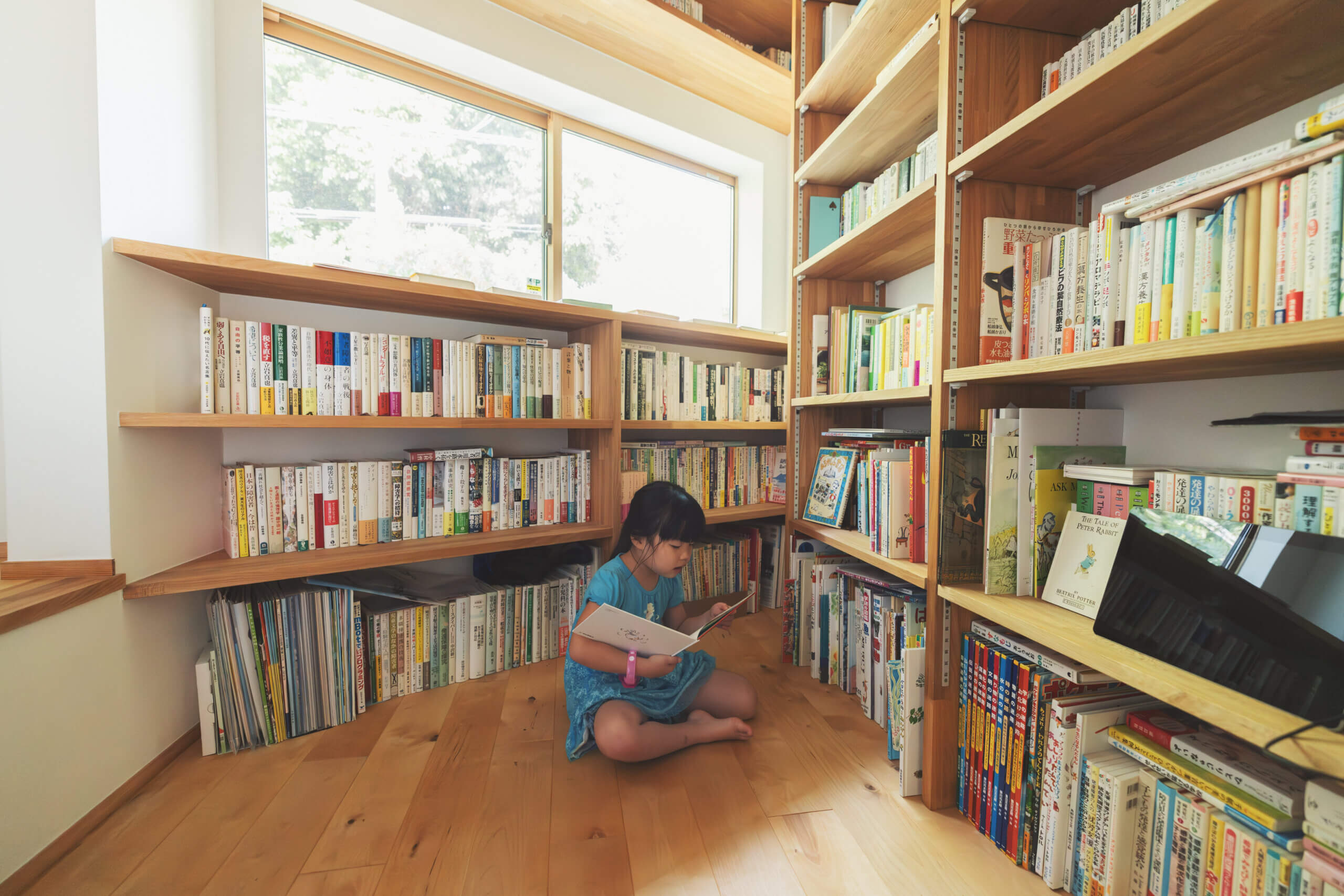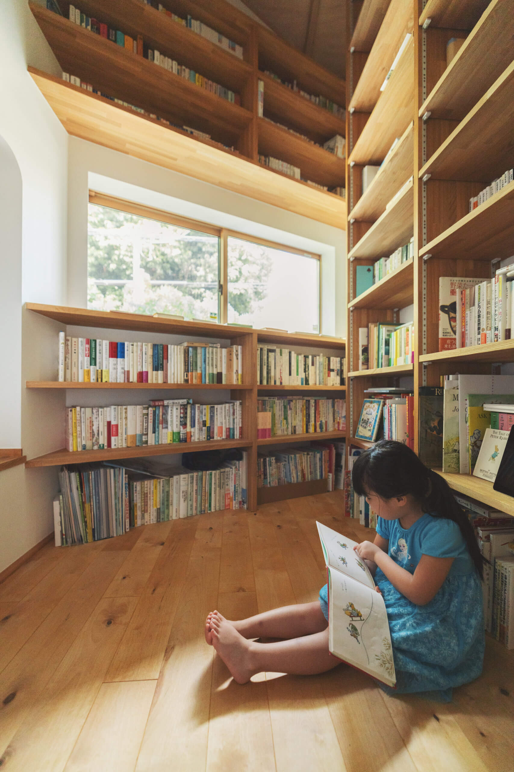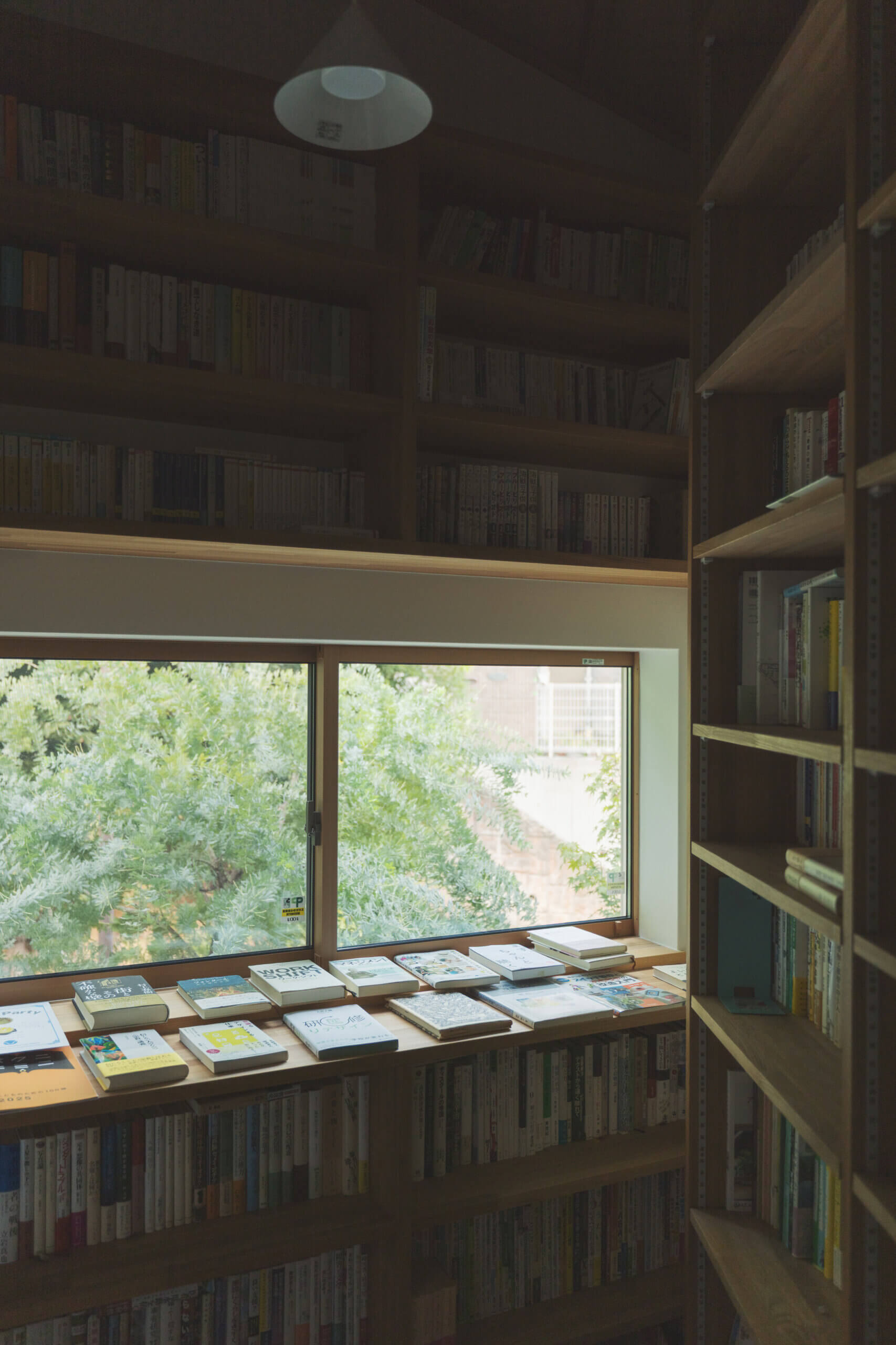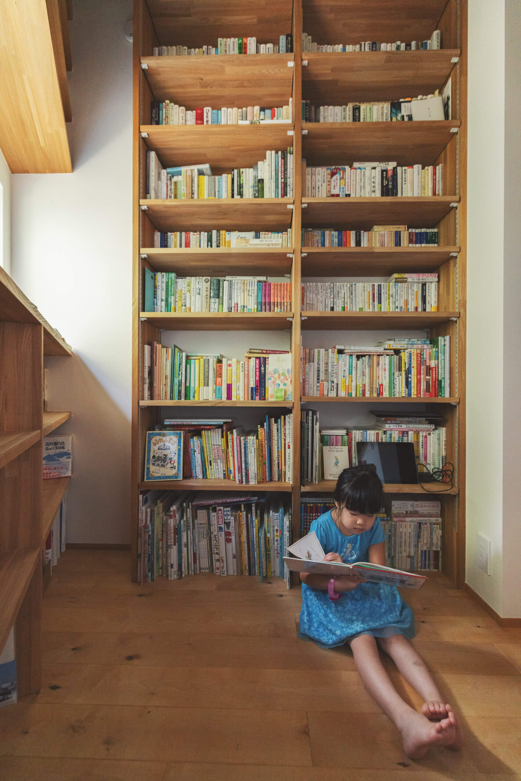 壁面いっぱいの本棚は、読書好きには憧れるスペースですが、その空間は、まるで書店のようです。施主様の本が好きなことはもちろんですが、本屋が好きなこと、よく行かれていることがわかる陳列で素敵な空間です。