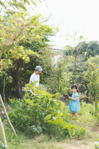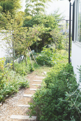 特徴の一つとして、「庭でガーデニングを楽しめるように」という要望がありました。シンボルツリーや様々な植物、収穫できるような生り物の樹木を植えて収穫を愉しむ生活をする。